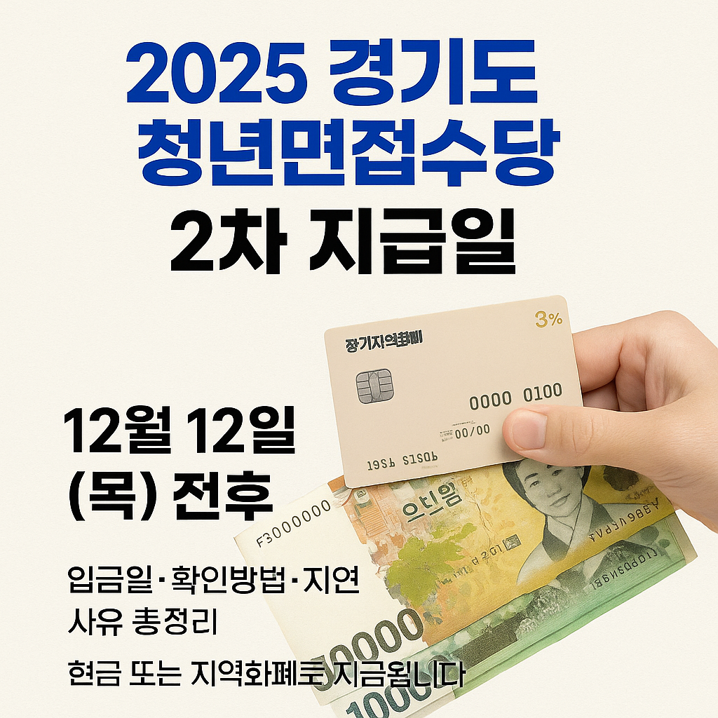 2025년 경기도 청년면접수당 2차 지급일은 12월 12일(목) 전후입니다.